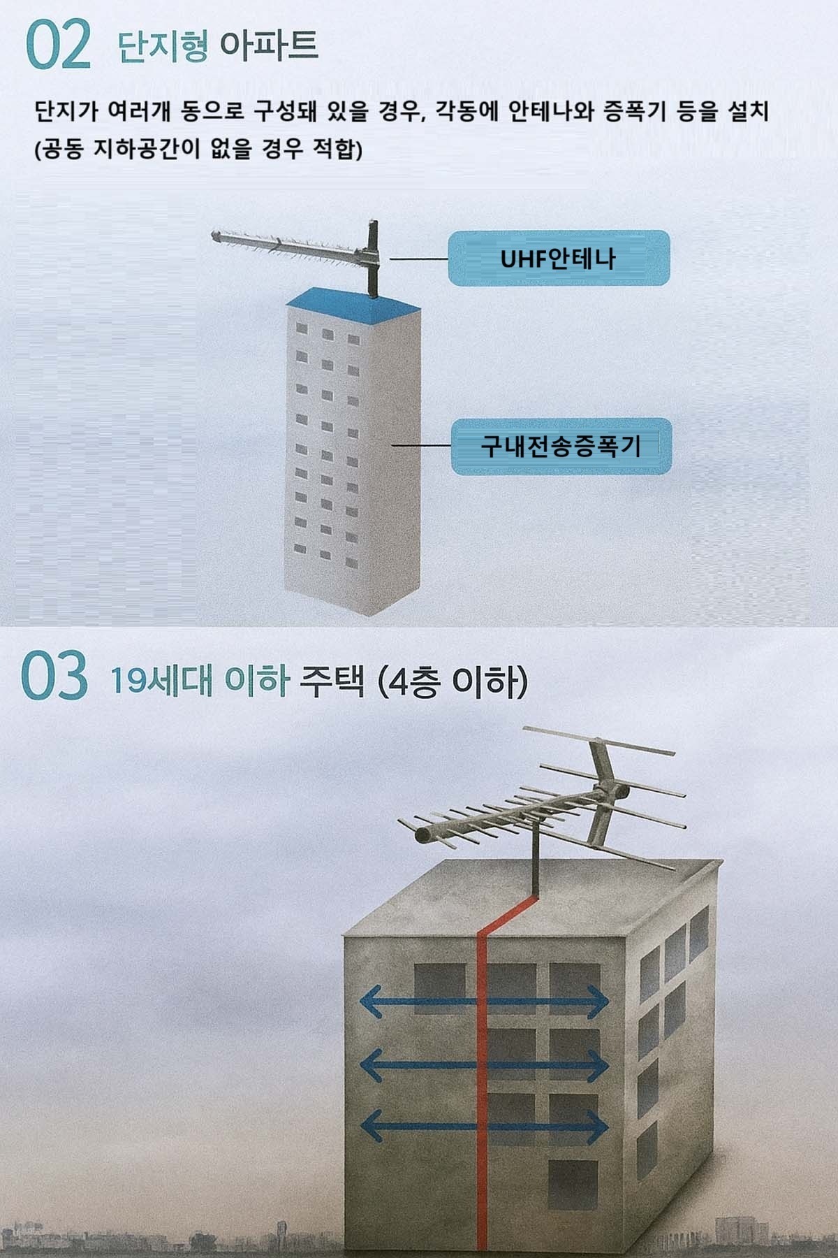 ¾ÆÆÄÆ®, ºôµù, ¿ÀÇǽºÅÚ, ºô¶óµîÀÇ °øµ¿ÁÖÅÿ¡¼ °¢ ¼¼´ëº°·Î ¾ÈÅ׳ª¸¦ µû·Î ¼³Ä¡ÇÏÁö ¾Ê°íµµ Áö»óÆÄ ¹æ¼ÛÀ» ¼ö½ÅÇÒ ¼ö ÀÖµµ·Ï °Ç¹°¿¡ °øµ¿¼ö½Å¾ÈÅ׳ª, ½ÅÈ£ÁõÆø±â, ÄÉÀ̺í, ºÐ¹è±â µî °íÈ¿À² ÀåºñµéÀ» ¼³Ä¡ÇÏ¿© ÀÔÁֹεéÀÇ ±ú²ýÇÑ Áö»óÆÄ ¹æ¼ÛÀ» ½Ãû Çϵµ·Ï ÇÏ´Â ¼³ºñ ¹æ½ÄÀÔ´Ï´Ù. °ø½Ãû ¼³ºñÀÇ ¼³Ä¡¿¡ °üÇØ¼ ÁÖÅà °Ç¼³ ±âÁØ µî¿¡ °üÇÑ ±ÔÁ¤À¸·Î °ø½Ãû ¼³ºñ ¹× ½Ã¼³À¯Áöº¸¼ö Àǹ«È¸¦ ½ÃÇà ÁßÀÔ´Ï´Ù.